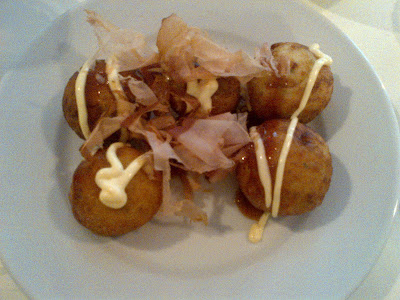 Curry Ono specialise in Japanese curries, as well as serving quite a big selection of other tapas-style starters. They also have a decent happy hour that runs from 6-8pm - you get a glass of wine or bottle of beer with a choice of starters for between £4 and £6. So, we took them up on it and got a bowl of edamame beans and a portion of Takoyaki with our drinks.